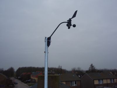De windmeter is op het dak geplaatst op een hoogte van 11 meter. (ca 1.50 meter boven